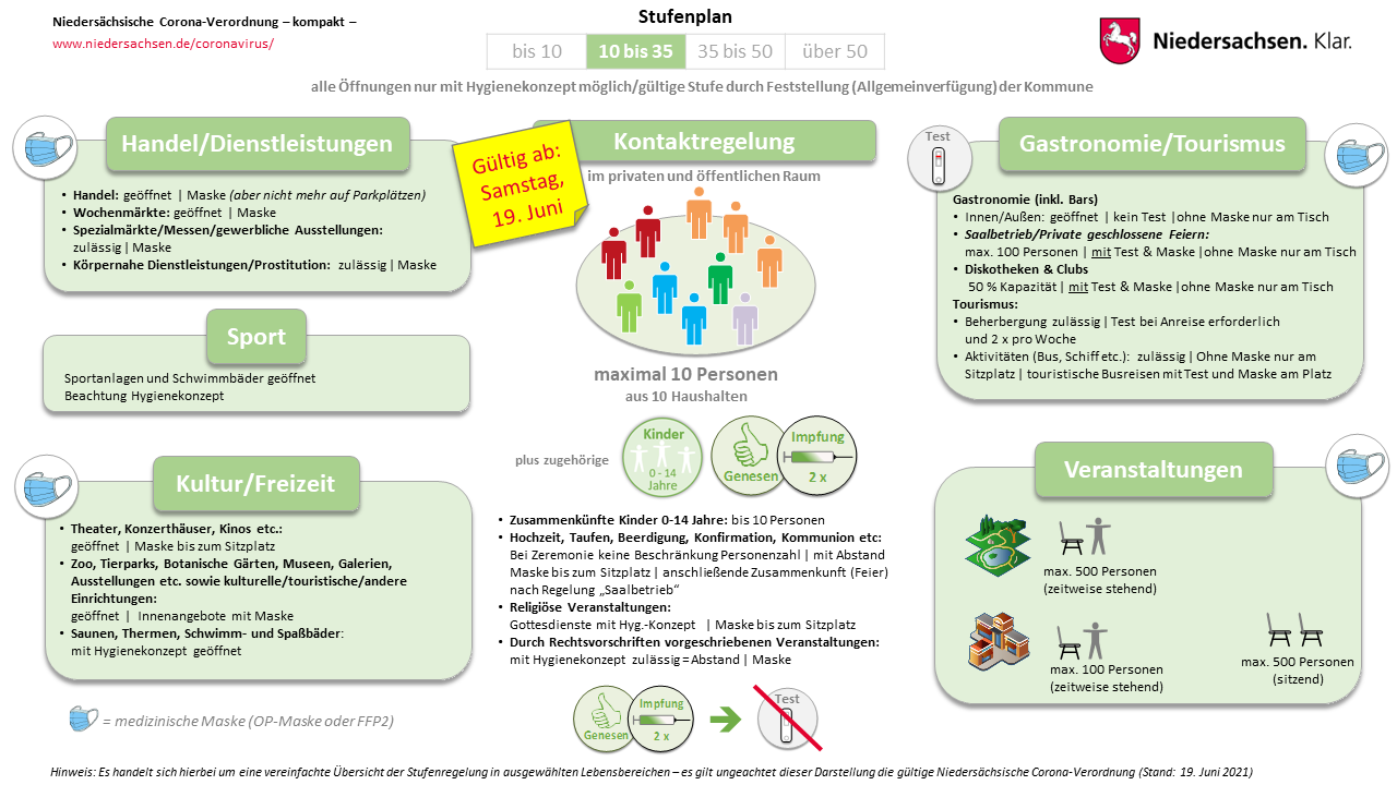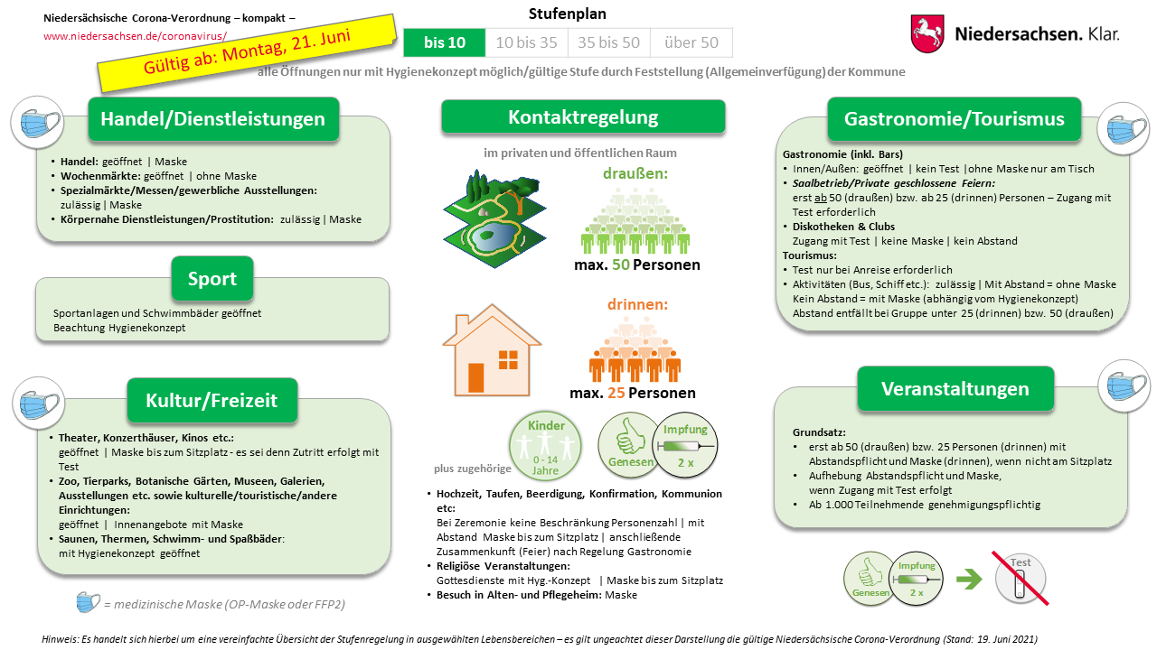 Hier finden Sie zusätzlich die übersichtlichen Grafiken des Landes Niedersachsen. Die detaillierte Verfügung können Sie hier nachlesen, zusätzliche und aktuelle Maßnahmen der Region Hannover finden Sie hier