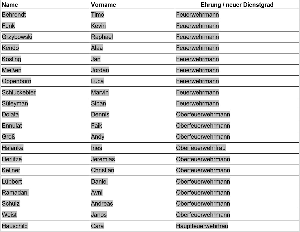 Neustadt – Am 05.09.2021 fand seit der Jahresdienstversammlung 2019 die erste Ehrungs und Beförderungszeremonie der Ortsfeuerwehr Neustadt am Rübenberge statt. Im Rahmen eines Dienstes wurden zahlreiche Ehrungen und Beförderungen teilweise in Abwesenheit