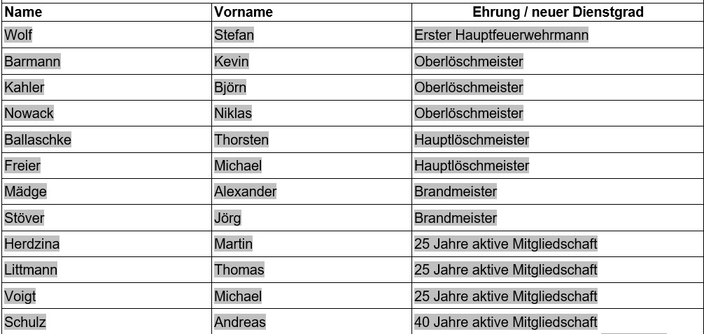 Ehrungs- und Befördrungszeremonie der Ortsfeuerwehr Neustadt